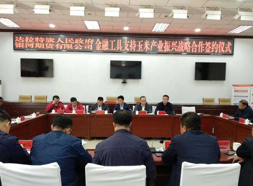 為充分發(fā)揮金融服務(wù)實(shí)體經(jīng)濟(jì)的作用,經(jīng)過(guò)前期與內(nèi)蒙古自治區(qū)達(dá)拉特旗政府及當(dāng)?shù)佚堫^企業(yè)的溝通,銀河期貨于2019年4月15日在內(nèi)蒙古自治區(qū)達(dá)拉特旗舉行《運(yùn)用金融工具支持達(dá)旗玉米產(chǎn)業(yè)振興戰(zhàn)略合作協(xié)議簽字儀式》。達(dá)拉特旗政府各級(jí)領(lǐng)導(dǎo)、當(dāng)?shù)佚堫^企業(yè)、種植大戶(hù)及其他工作人員出席本次簽字儀式。